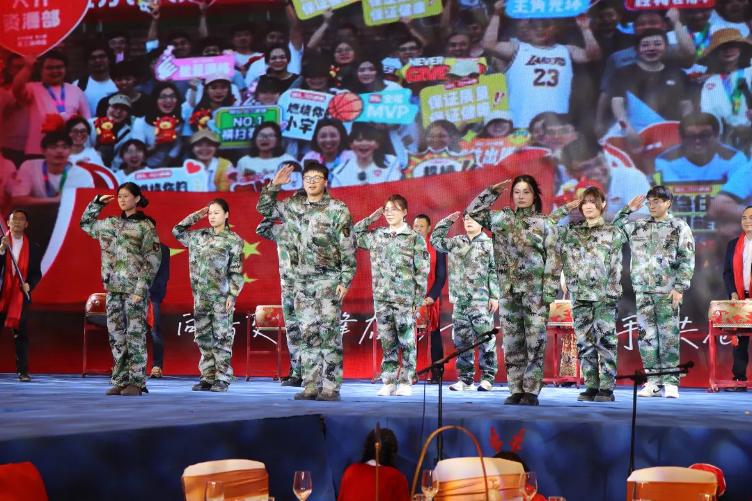 晚会伊始,一支别具一格的军体拳表演瞬间点燃了现场气氛。随着激昂的音乐响起,他们目光坚定,动作刚劲有力,每一次出拳都虎虎生风,每一次踢腿都干脆利落,展现出了坚韧不拔的精神风貌和强大的团队凝聚力。
